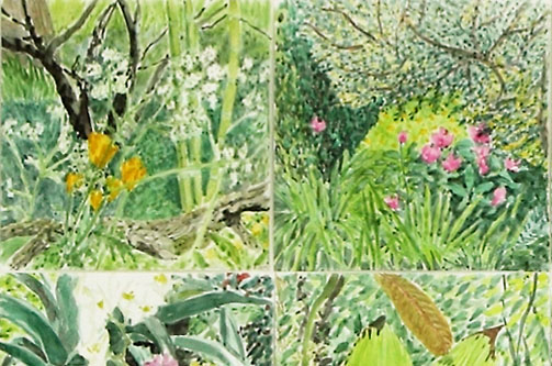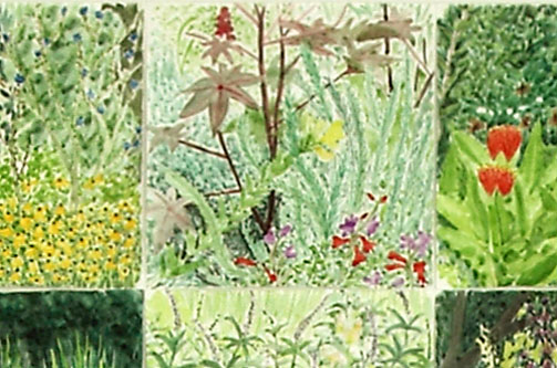 Garten Arbeit, Aquarellfarbe auf Papier, je 20x20 cm, 2008 - 2012