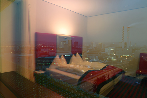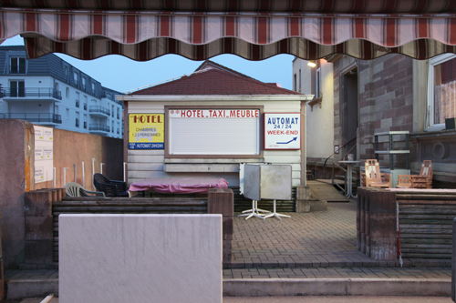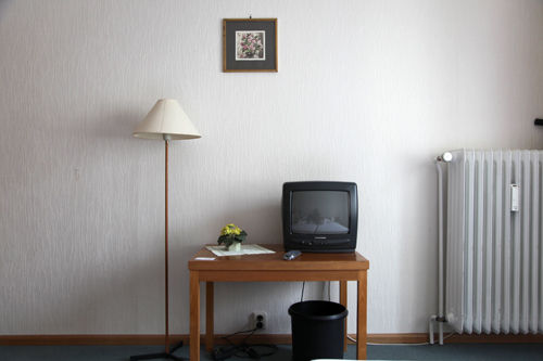 "Das 4.Land" zeigt eine Reise durch die Grenzregion der drei Länder Schweiz, Deutschland, Frankreich. Mit Rucksack und Fotoausrüstung durchwanderten wir das Gebiet in unmittelbarer Nähe zu unserer Wohnung in Basel. Wie Touristen wohnten wir dabei in Hotels, als wären wir auf einer weiten Reise. Die Reise entwickelt sich wie ein Krimi ohne Handlung und spielt in einem undefinierbaren Gebiet zwischen verlassenen Grenzen, Dickicht, Schrebergärten, Industriearealen, Einfamilienhaussiedlungen und zwielichtigen Hotelzimmern.