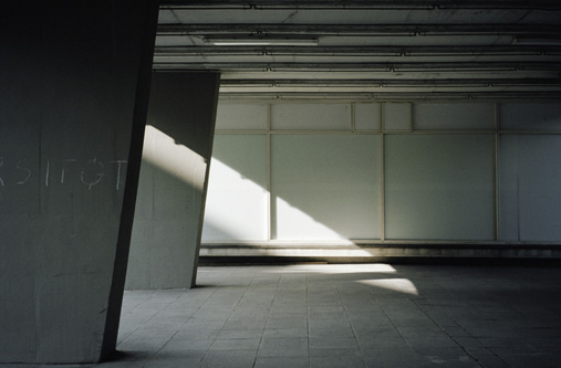 Aufnahmen zeigen architektonische Details, Spiegelungen und leere Räume.